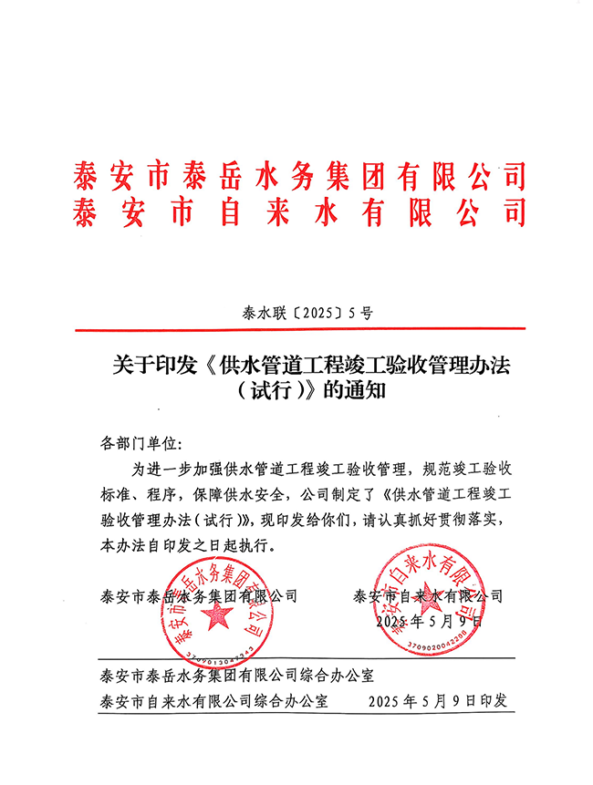泰 安 市 自 來 水 有 限 公 司 |